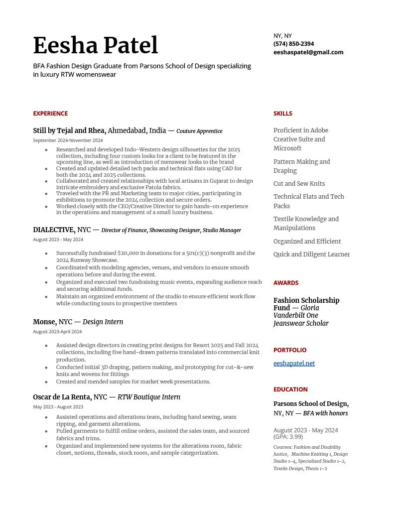 BFA Fashion Design Graduate from Parsons School of Design specializing in womenswear.